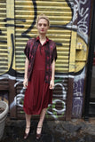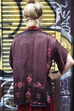 Beautiful aubergine ethnic top/jacket with cross-stitch hand-embroidery, made in the Middle East, probably Syria or Palestine. Heavy rayon finely-woven fabric.
