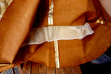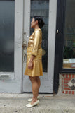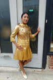 Really unique gold leather dress with sequin flowers and velvet brocade trim.