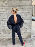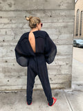1980’s Knit Jumpsuit with Fringed Shoulders and Slit Back