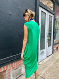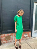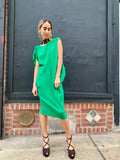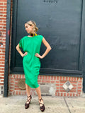 Great color and silhouette. Easy, elegant dress in a great green jewel tone. Dates from the 1990’s - 2000’s.