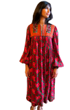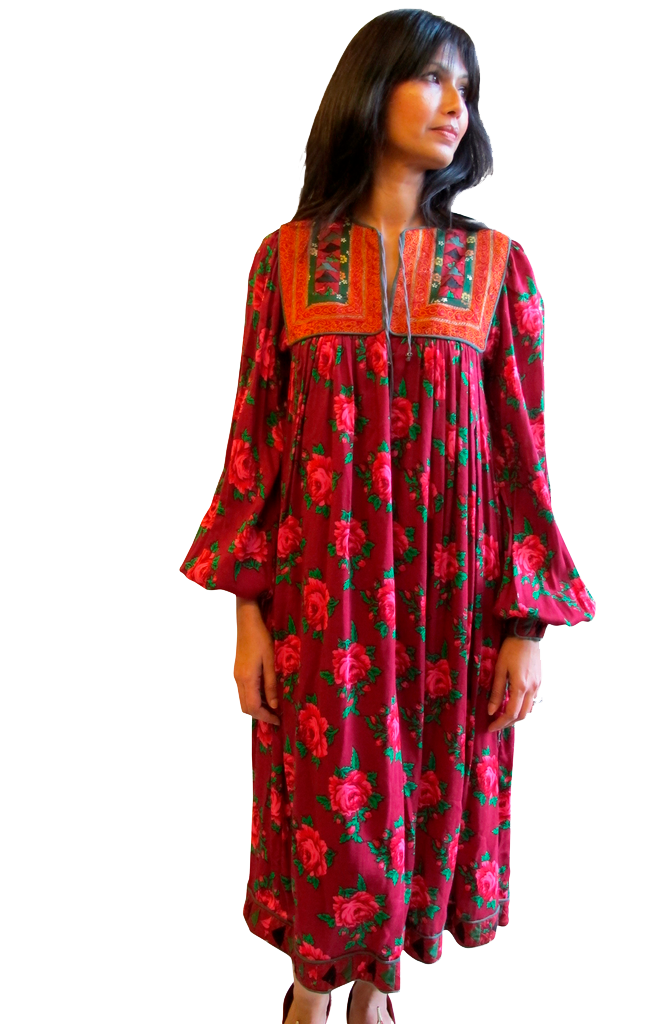 1960-70's Afghani Floral Print Dress with Patchwork Embellishment - SOLD