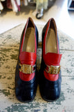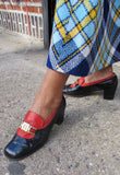 1970's Aigner Navy and Red Heeled Loafers - SOLD