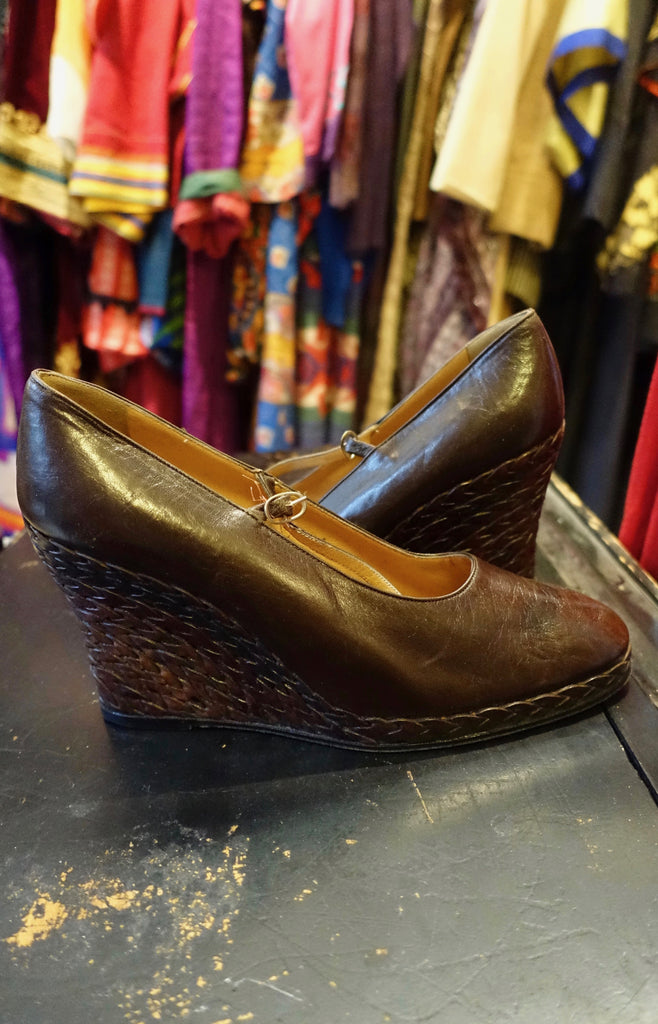 1970's Mario Valentino Brown Leather Braided Wedge Shoes - SOLD