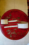 This red and white Celine strappy three tiered belt is super mod and trés chic.