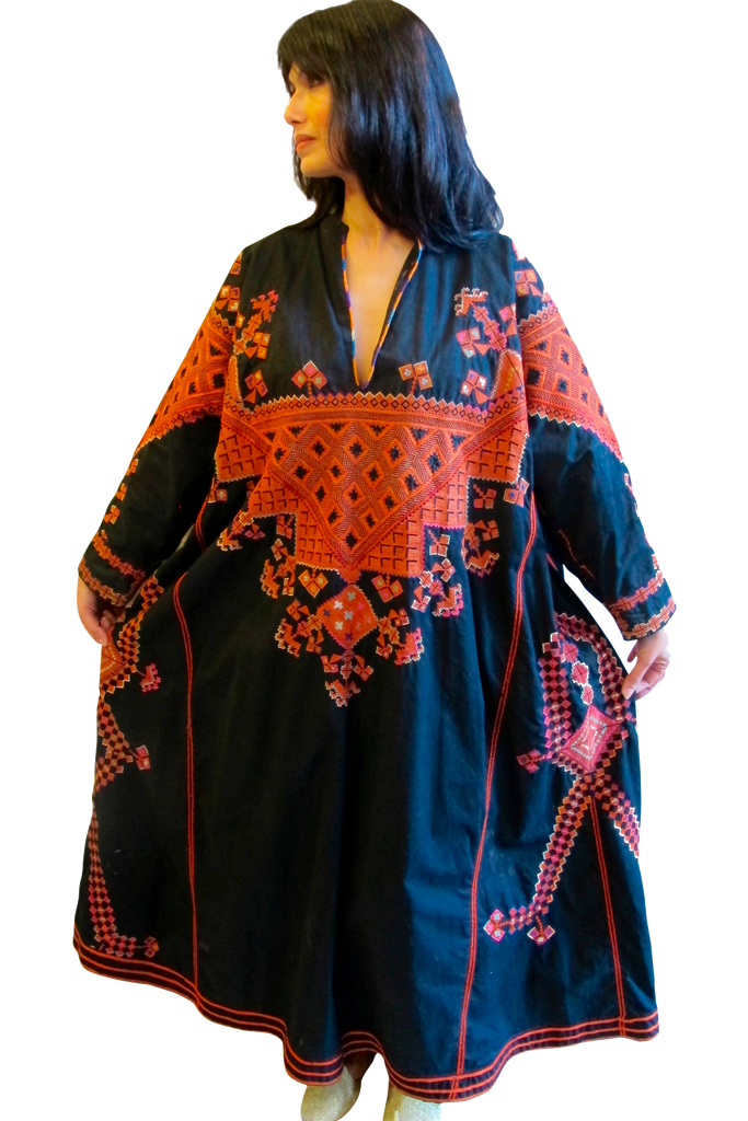 Heavy 100% cotton indigo dyed Turkoman tunic with intricate hand embroidery.