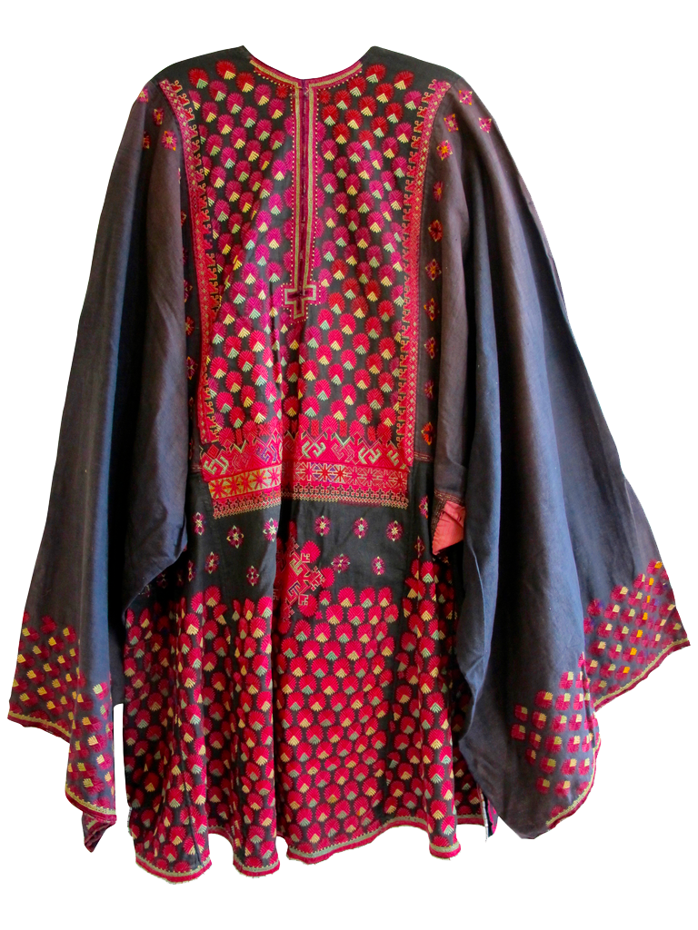 Turkoman embroidered tunic with extra-wide long sleeves. 100% cotton, hand made, dyed and embroidered.