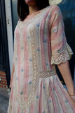 1910's Edwardian Pink Striped and Floral Dress - SOLD