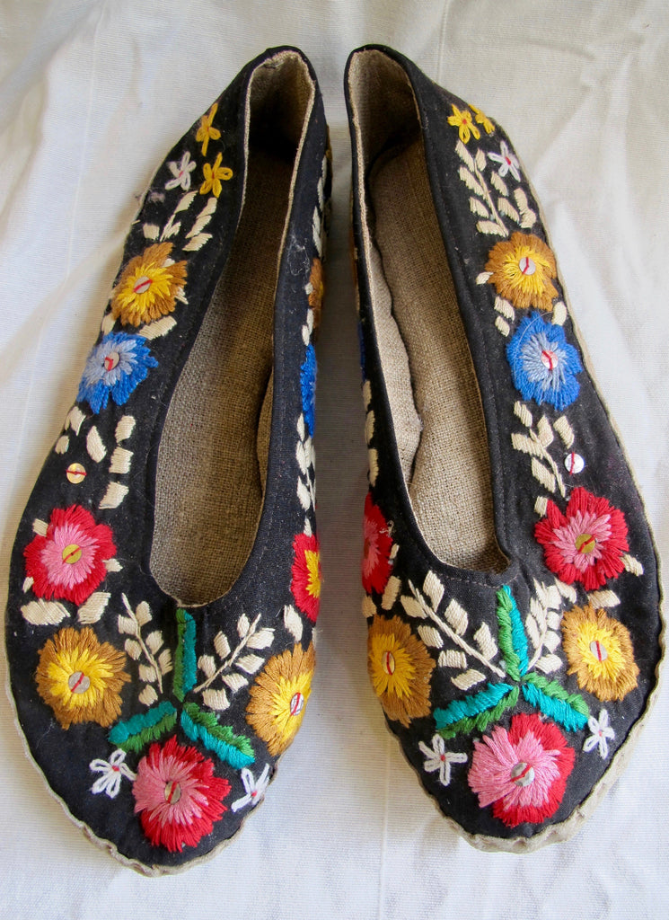 Eastern European Ethnic Floral Embroidered Slippers - SOLD