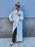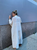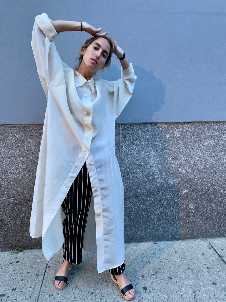Gorgeous sheer collared full-length button-down shirt dress. Can be worn as a dress or layered as a jacket. US Size 12. Excellent vintage condition.