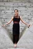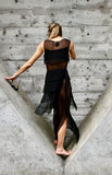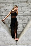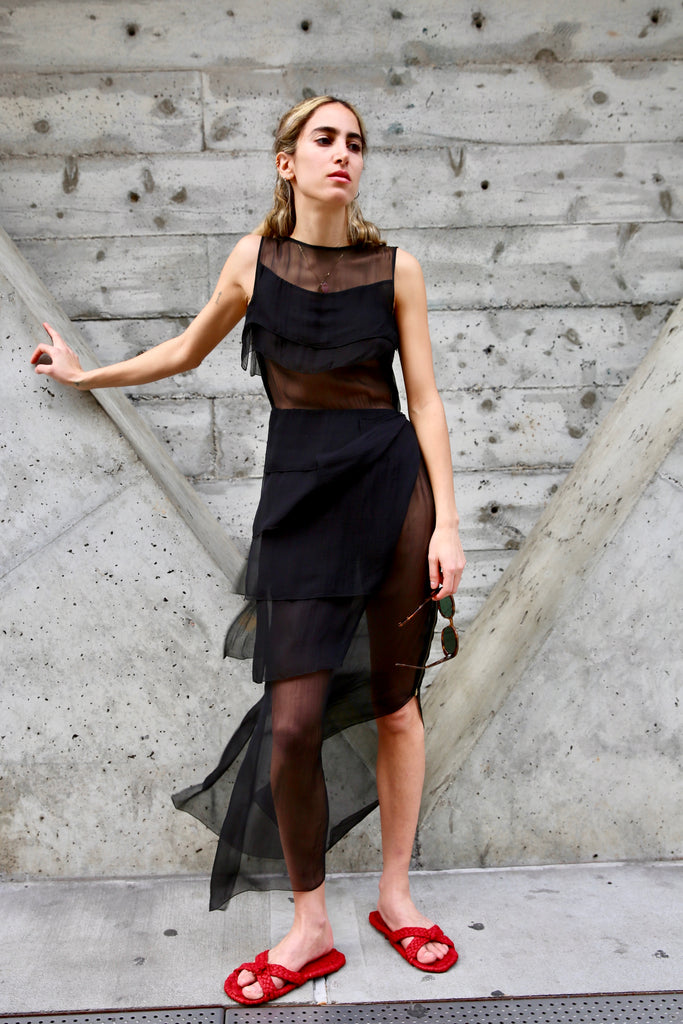 Stunning silk transparent sheath dress with layered silk panels and side zippers. Excellent condition.