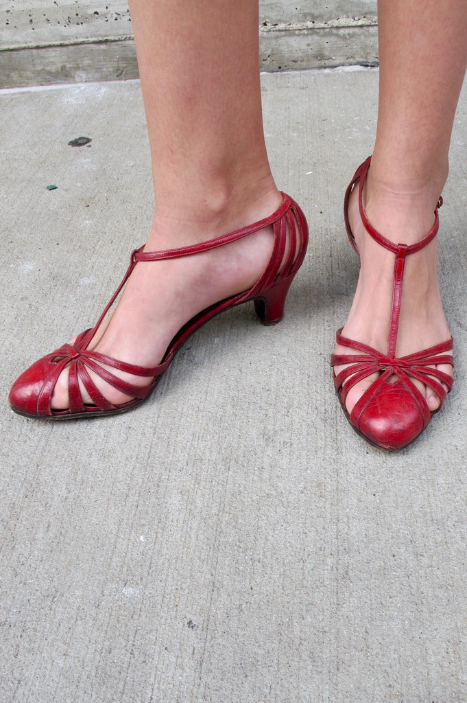 Early 1960's Red Leather T-Strap Heels - SOLD