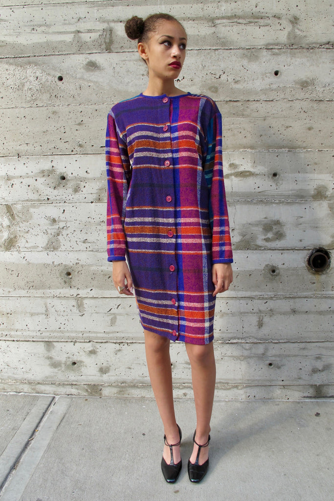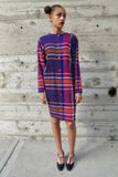 1980's Missoni Knit Purple, Pink, Green, White Plaid Dress