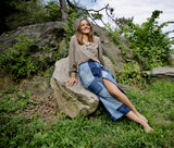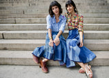 A reproduction of my own beloved vintage patchwork wrap-skirt, the nearly 50 vintage patches gathered have been worn and weathered over time and reflect countless stories and adventures reminiscent of the Summer of Love. Daniela is described as "Couture Ready-to-Wear" by the fabricator because of the painstaking, innovative process it takes to remake her as close to the original as possible. For example, each patch must be seam-ripped instead of cut so that the well-worn vintage denim fabric will lay flat when sewn together. Daniela is truly a labor of love!
