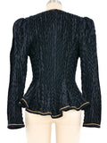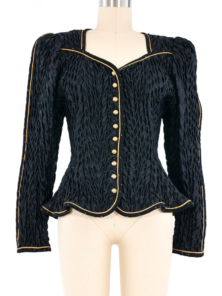 - Manipulated stretch quilt jacket with gold piping and polka dot trim