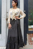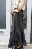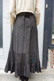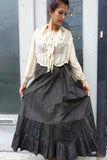 Black watered taffeta Victorian skirt, with abstract floral embroidery near hem. Very wearable!