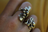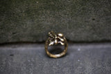 Brutalist-inspired ring with organic shapes suggestive of the intertwined limbs of a human figure.