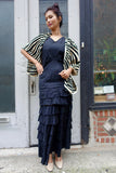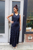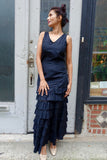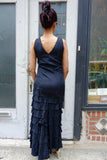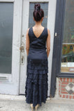 Elegant 1930s gown with row after row of flouncy ruffles on the skirt. Dress is made of taffeta and net.