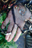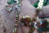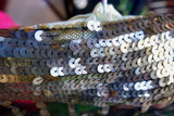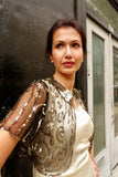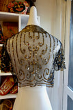 Pretty little black net bolero with hand sewn gold and silver sequin pattern. Perfect for an evening out. Sleeves snap open.