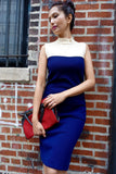 1960's Navy and White Color block Knit Dress - SOLD