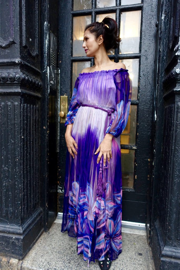 1970's-80's Purple Silk Peasant Dress - SOLD