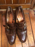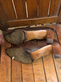 In somewhat worn condition, the leather shows some wear and heels caps need replacement.