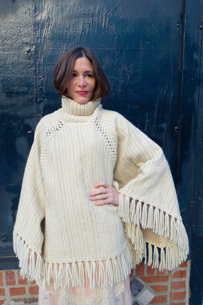 1970's Handwoven Cream Wool Turtleneck Cape - SOLD