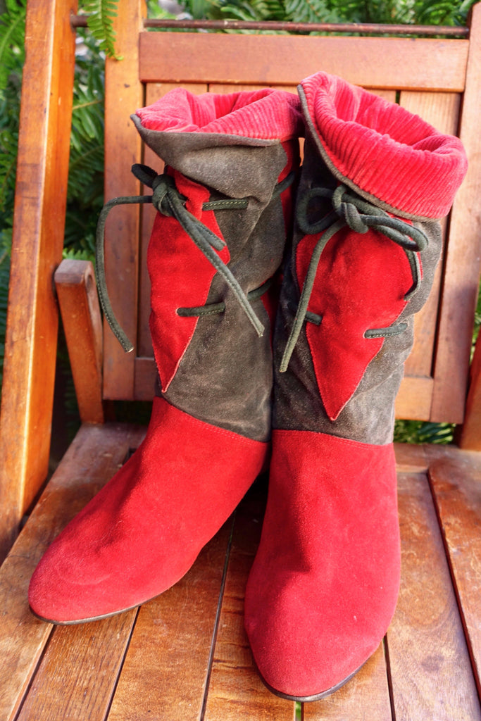 1980's Red and Gray Suede Harlequin Boots - SOLD