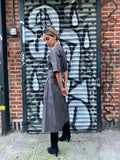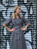 The perfect belted shirt dress by Celine with Yves Saint-Laurent vibes. Belt wraps around with buttons and multiple ways to tie or tuck the end of the strap. Excellent Condition.