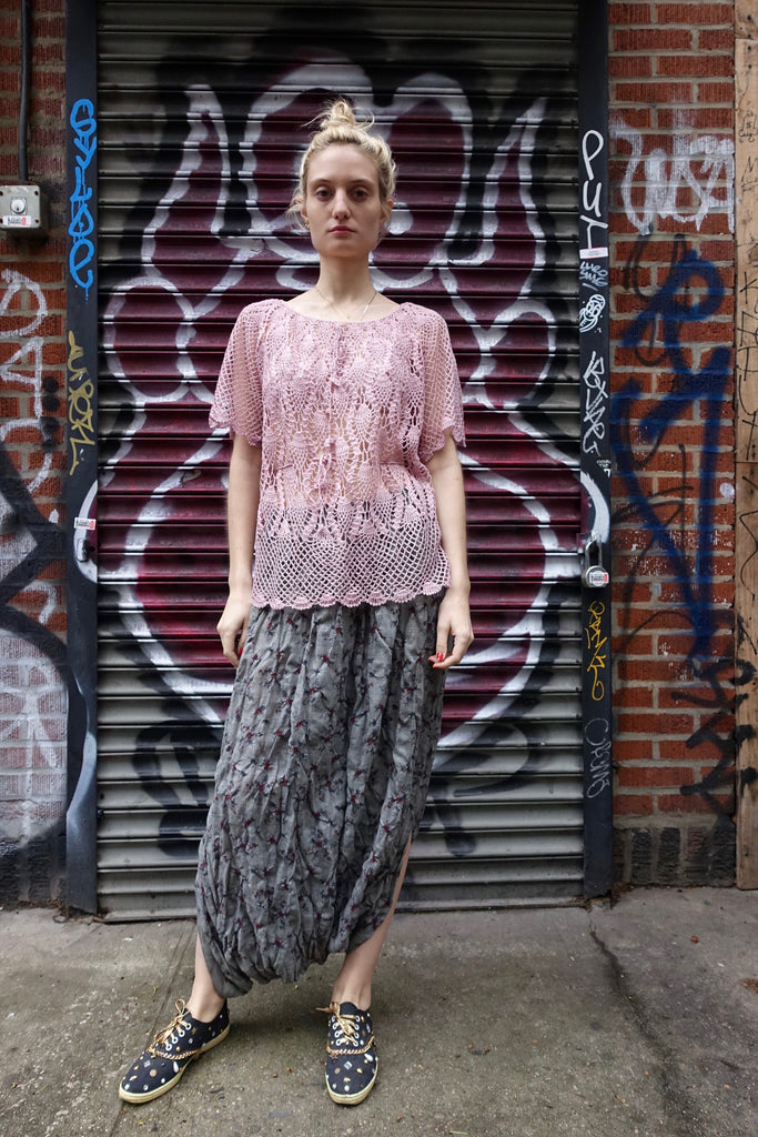 Pretty feminine crochet top. Drawstring waist. Silk/rayon blend.