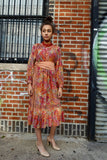 Measurements: 26" across chest/waist/hips, 44.5" total length, 21" sleeve length. Dress is approximately a size 6-8, meant to be worn in a blousy, peasant style. Because of style, it could be worn by someone a bit bigger as well. Model is approximately 5'7" and 105 lbs.