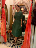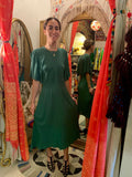 1970's Jean Muir Jewel Green Silk Crepe Dress